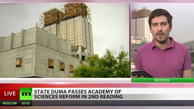 АЛЕКСЕЙ ЯРОШЕВСКИЙ, корреспондент Prime Time: Как и это обычно и бывает со всеми законопроектами в России, она прошла через второе чтение – эта новая реформа Российской академии наук. Она должна еще пройти третье чтение и Верхнюю палату российского парламента, а потом должна быть подписана президентом. Так что пройдет еще какое-то время, прежде чем это подтвердится официально.