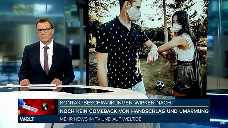 ЛЕЯ ФРАЙСТ, корреспондент Welt: По данным опроса, проведённого в прошлом году Трирским университетом, больше половины сказали, что хотят и дальше использовать бесконтактные приветствия из-за угрозы заражения или же из-за привычки.