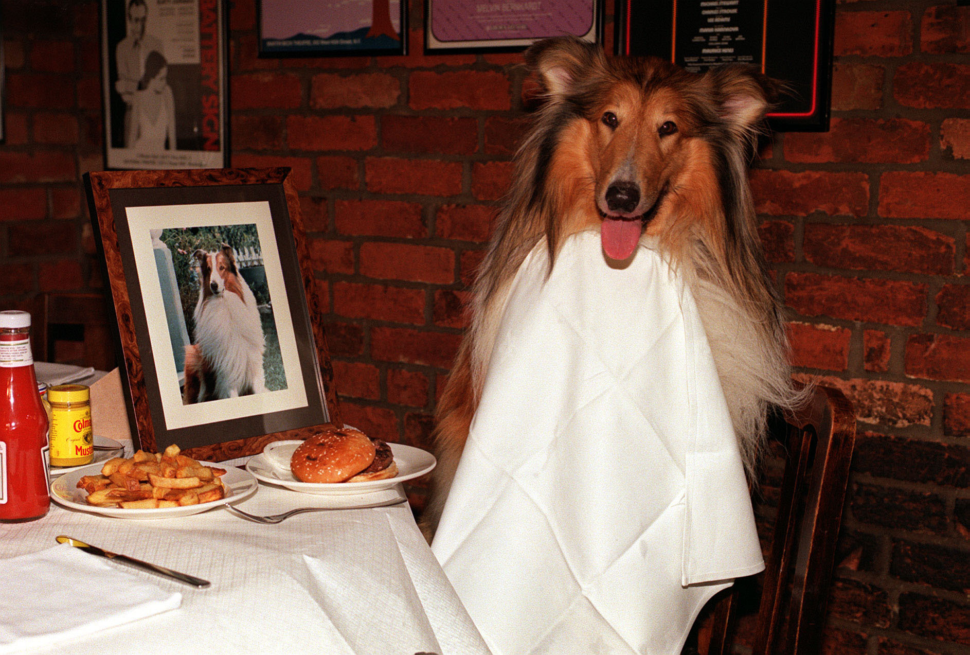 • Собака Лесси в ресторане Джо Аллена во время визита в Лондон