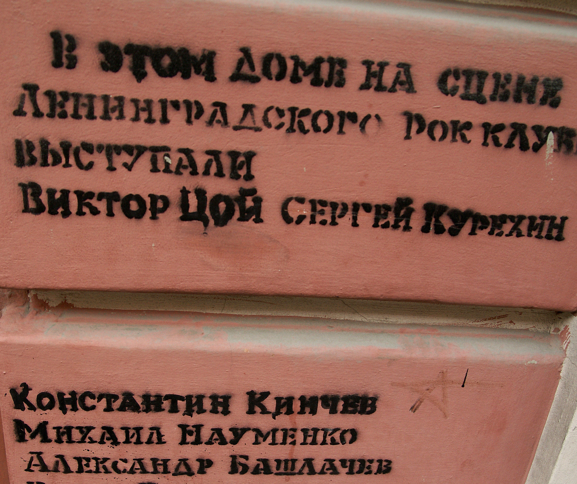 - Улица Рубинштейна, дом 13. На снимке: граффити с именами музыкантов бывшего Ленинградского рок-клуба.