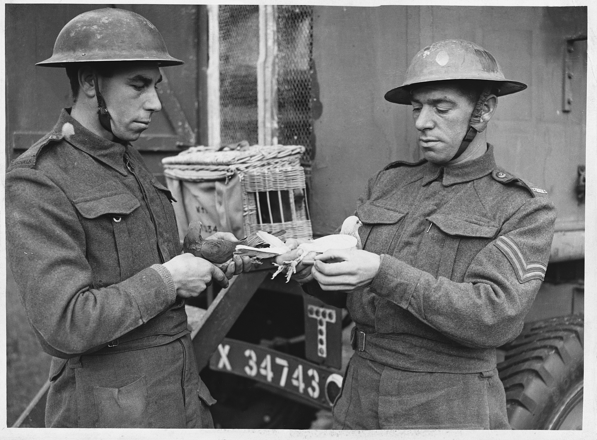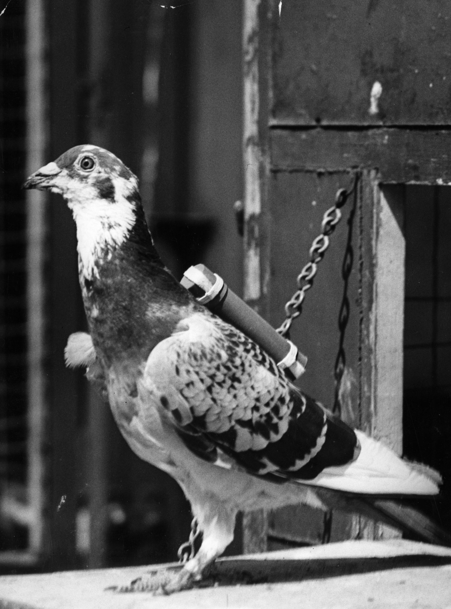 - Голубь из мобильного подразделения армейской голубиной службы использовался для доставки сообщений в Африку, его запрягали с помощью специального приспособления для переноски грузов на спине