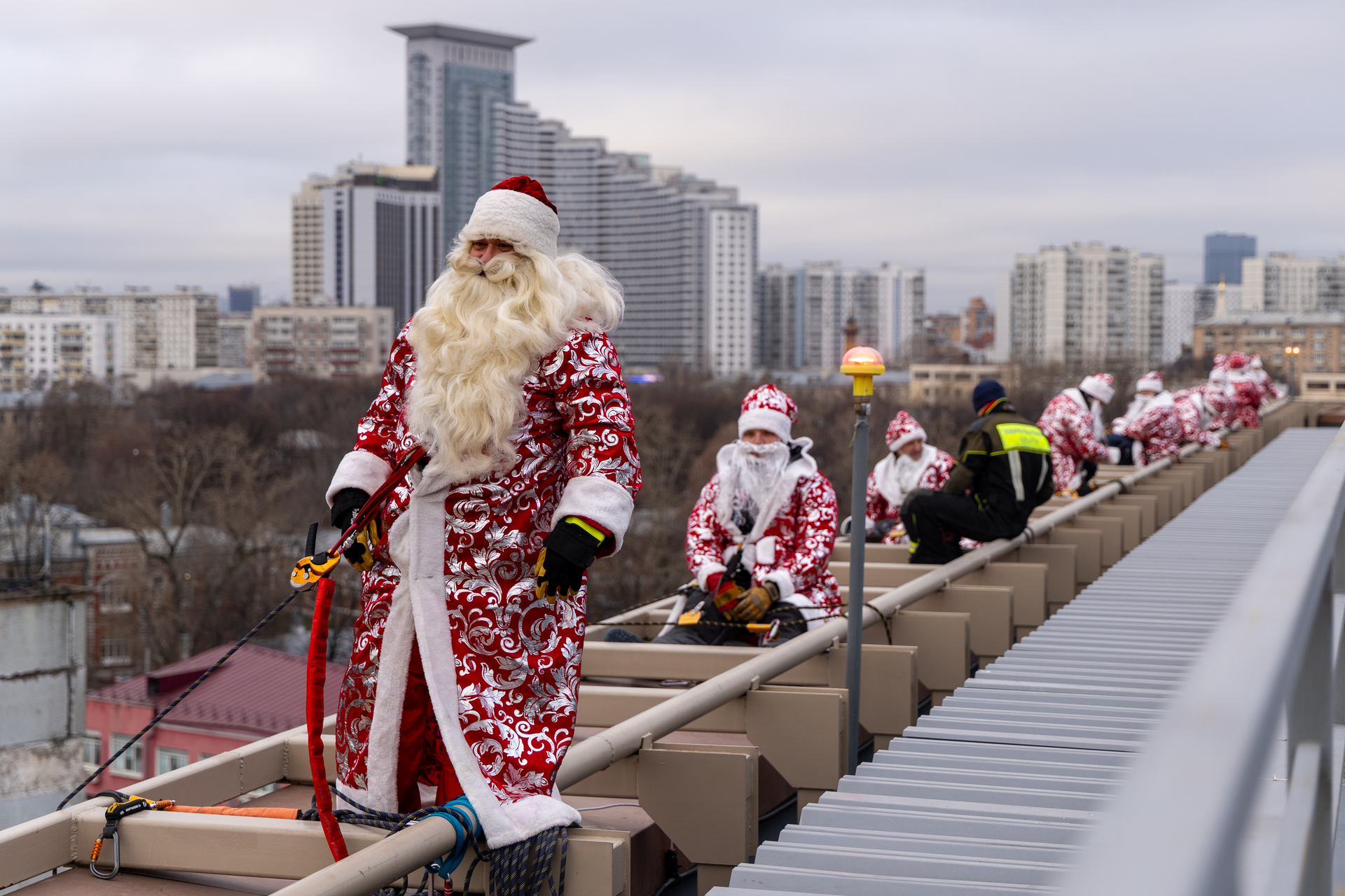 Санта-Клаус, как известно, доставляет подарки по воздуху. Нашим Дедам Морозам для этого не требуются ни сани, ни олени — только ловкость и альпинистское снаряжение.