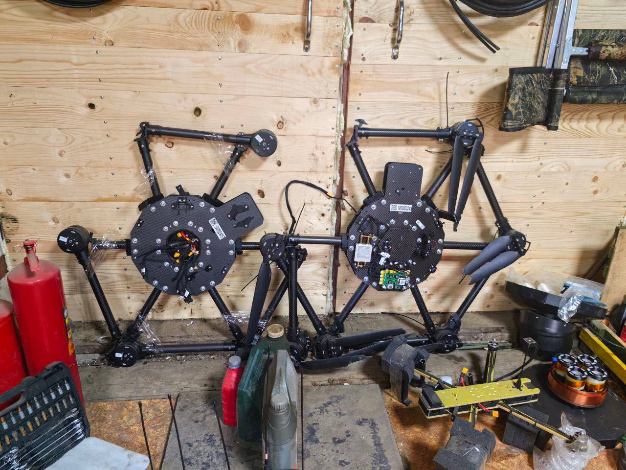 Охота на «Бабу-ягу», столь славно идущая на передовой, начинается в бригадной лаборатории. Помещение загромождено трофейными «бабками», поставляемыми Министерством обороны FPV-дронами, а также бесконечными проводами и платами. Здесь тоже ломают голову над тем, как бороться с гексакоптерами. Руководитель инженерного направления бригады с позывным Ахам показывает разведывательный БПЛА, к которому прикреплены две кевларовые нити и стальной тросик.