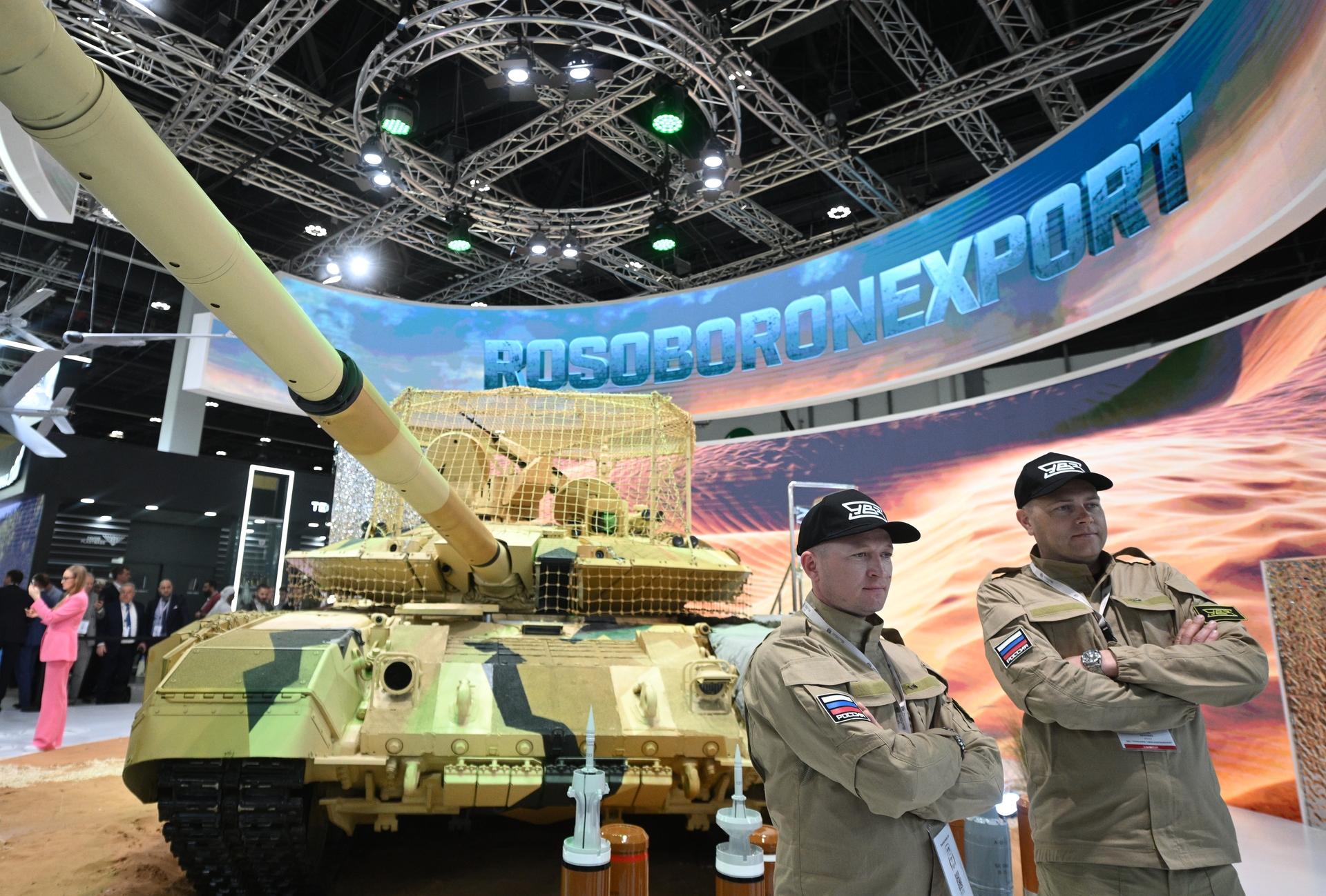 На стендах российской экспозиции традиционно представлены истребитель пятого поколения Су-57Э, танк Т-90МС, а также множество образцов стрелкового оружия, беспилотников и военной амуниции.