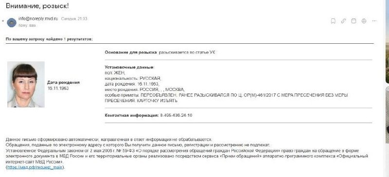 62-летнюю экс-чиновницу из Москвы Марину Солинову следователи ищут с 2017 года. Она находилась под следствием за мошенничество, но, согласно данным правоохранительных органов, сбежала за границу. Защита бывшей госслужащей утверждала, что за пределами России женщина якобы лечится. Её адвокаты также настаивали, что подзащитная не скрывалась от властей, поскольку не была в курсе уголовного преследования.