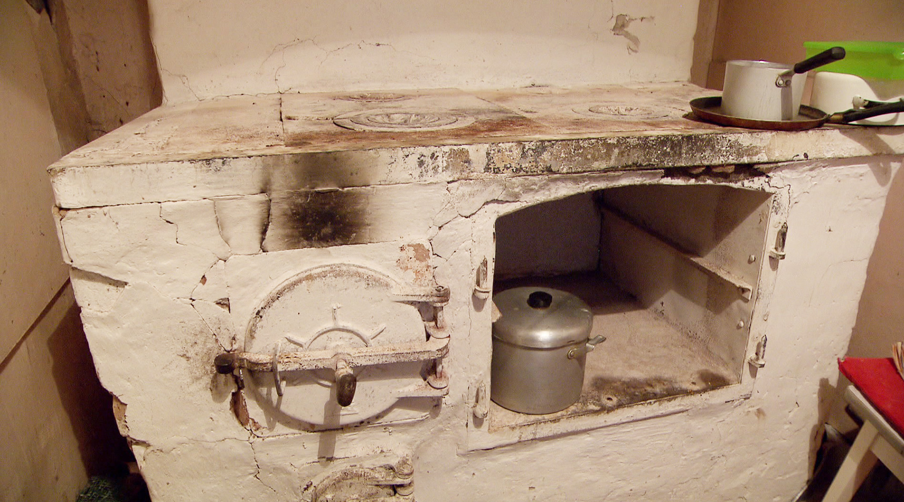В разговоре с RT Виктор Васильевич то храбрился и заявлял, что сможет справиться со всеми трудностями, то терял присутствие духа и начинал делиться наболевшим. Он рассказал, что в холодное время года квартира обогревается лишь при помощи старой дровяной печи — в этом году зимой температура в помещении не поднималась выше 16 градусов. Печь коптит, из-за этого все потолки в доме чёрные.