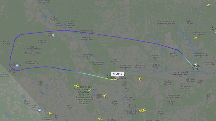Рейс SU1515 вылетел из Сургута в 14:39 по местному времени (12:39 мск) и должен был приземлиться в московском аэропорту Шереметьево в 16:20 мск.