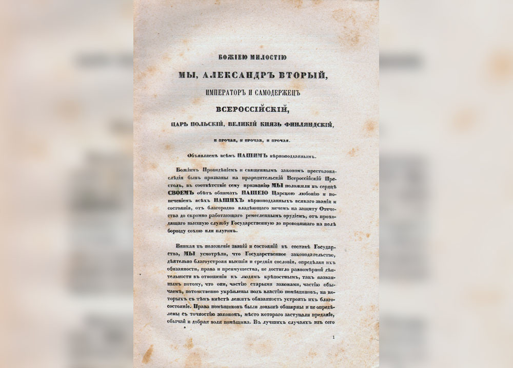 3 марта 1861 года царь Александр II отменил крепостное право в России. Система личной зависимости крестьян от помещиков тормозила развитие страны. Ликвидация крепостничества привела к масштабным социально-экономическим переменам.