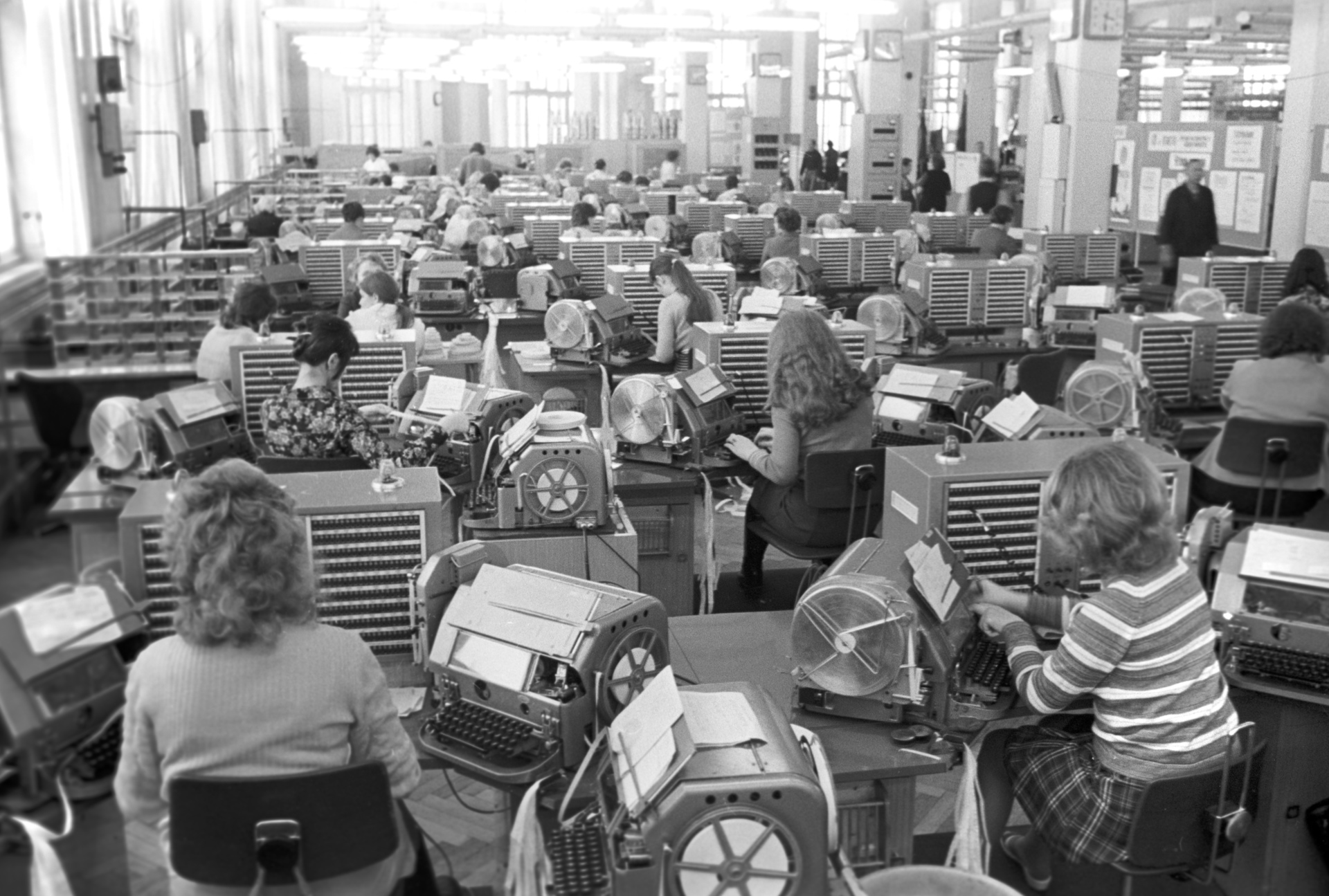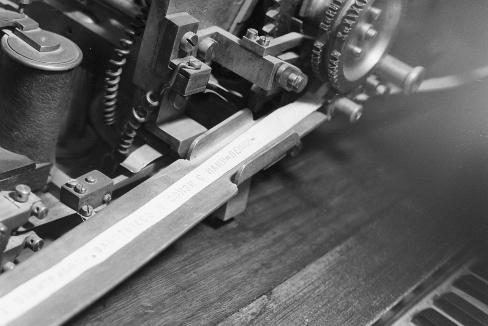 - Телеграфный аппарат. На ленте — текст за подписью В.И. Ленина