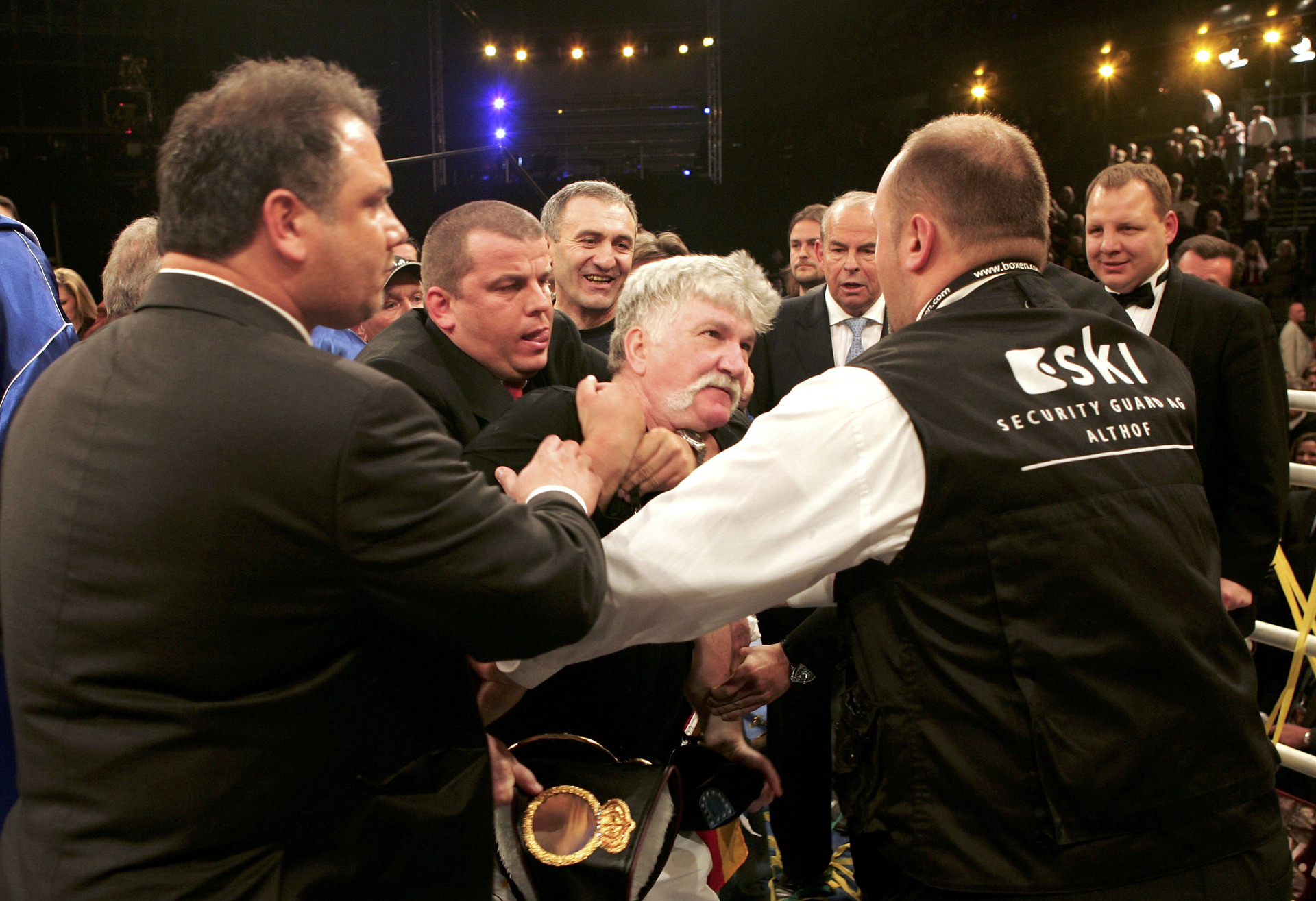 Кстати, главный скандал вечера не попал в трансляцию, а ведь того стоил. Как рассказывал журналист Александр Беленький, сразу после объявления официального вердикта Стоун выхватил пояс у Валуева, но далеко с ним не ушёл и попал под горячую руку Ули Вегнера — главного тренера команды Зауэрланда. Тот отбросил потерявшего контроль менеджера к канатам, где его за шею схватил охранник, а трофей всё же был передан его обладателю.