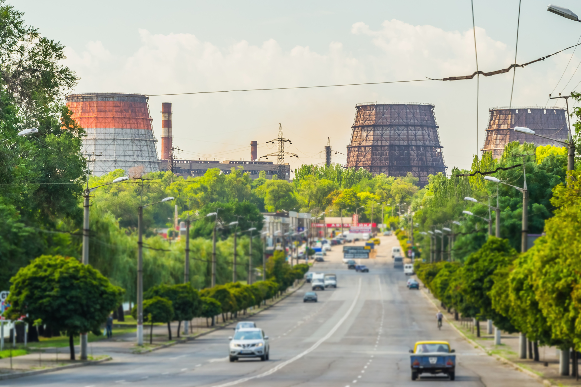 - ArcelorMittal Kryvyi Rih cooling towers next to Metallurgiv avenue