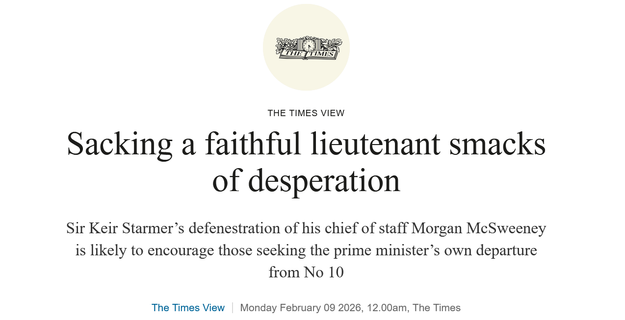 «Они удалили гангренозную конечность, но ведь Морган был его правой рукой», — приводит газета мнение неназванного приближённого Стармера.