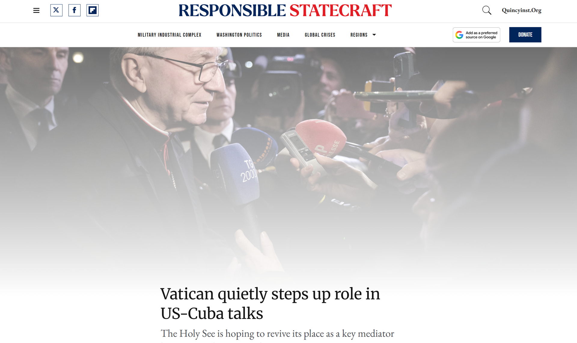 - «Ватикан без лишнего шума берёт на себя более активную роль в американо-кубинских переговорах»
