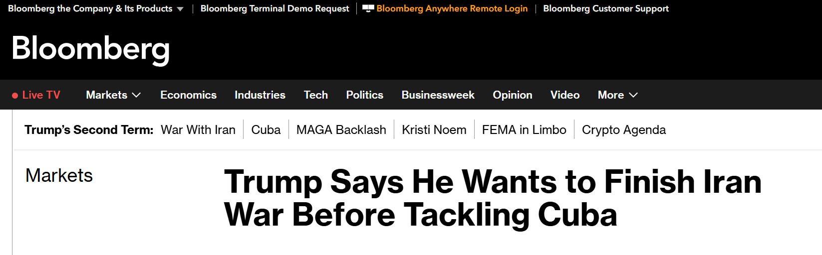 Так, согласно заявлениям главы Белого дома, США намерены решать кубинский вопрос по окончании войны с Ираном, передаёт Bloomberg.