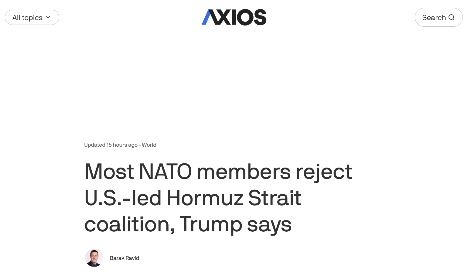 - «По словам Трампа, большинство членов НАТО отвергают идею коалиции по Ормузскому проливу во главе с США»