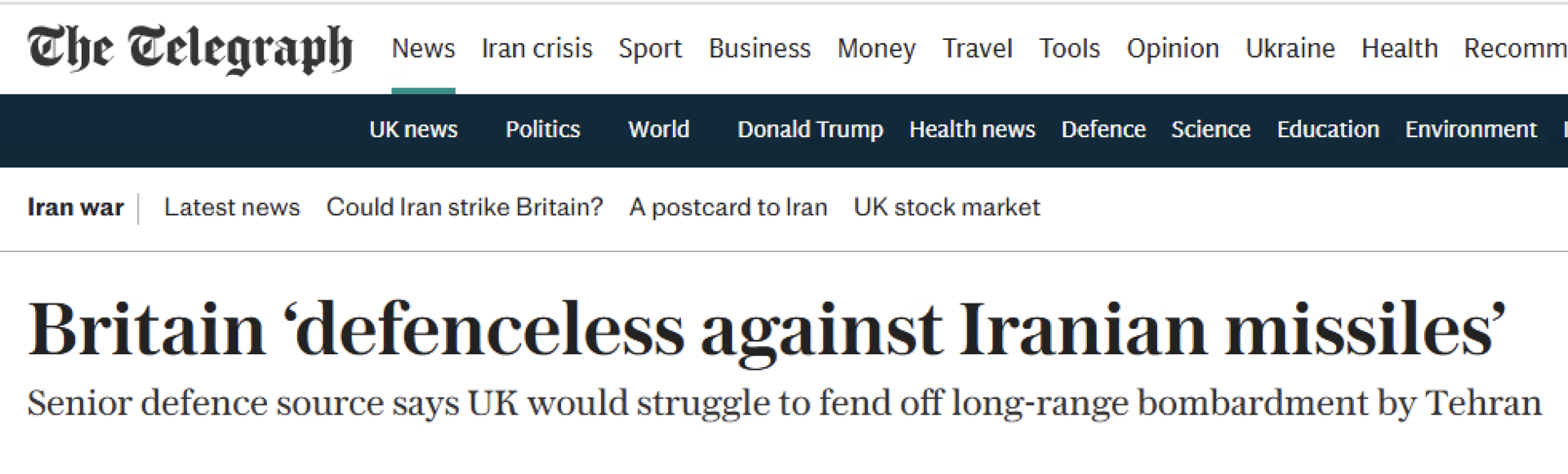 Западные СМИ также обсуждают ракетные возможности Ирана, о которых ранее не было известно. В частности, британская газета The Telegraph сообщает, что попытка удара по американо-британской базе Диего-Гарсиа, расположенной в Индийском океане в 4 тыс. км от исламской республики, свидетельствует о том, что Тегеран может достать и до Лондона. Издание со ссылкой на мнение бывших военных отмечает, что Британия сейчас «беззащитна перед иранскими ракетами», так как навыки британских военных по перехвату баллистических ракет оставляют желать лучшего.