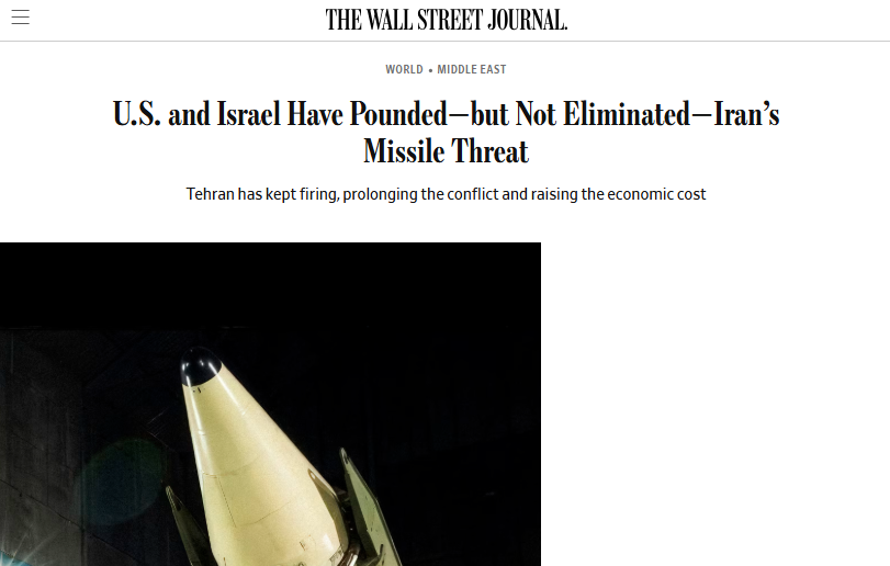 - WSJ: США и Израиль поразили ракетную угрозу Ирана, но не устранили её