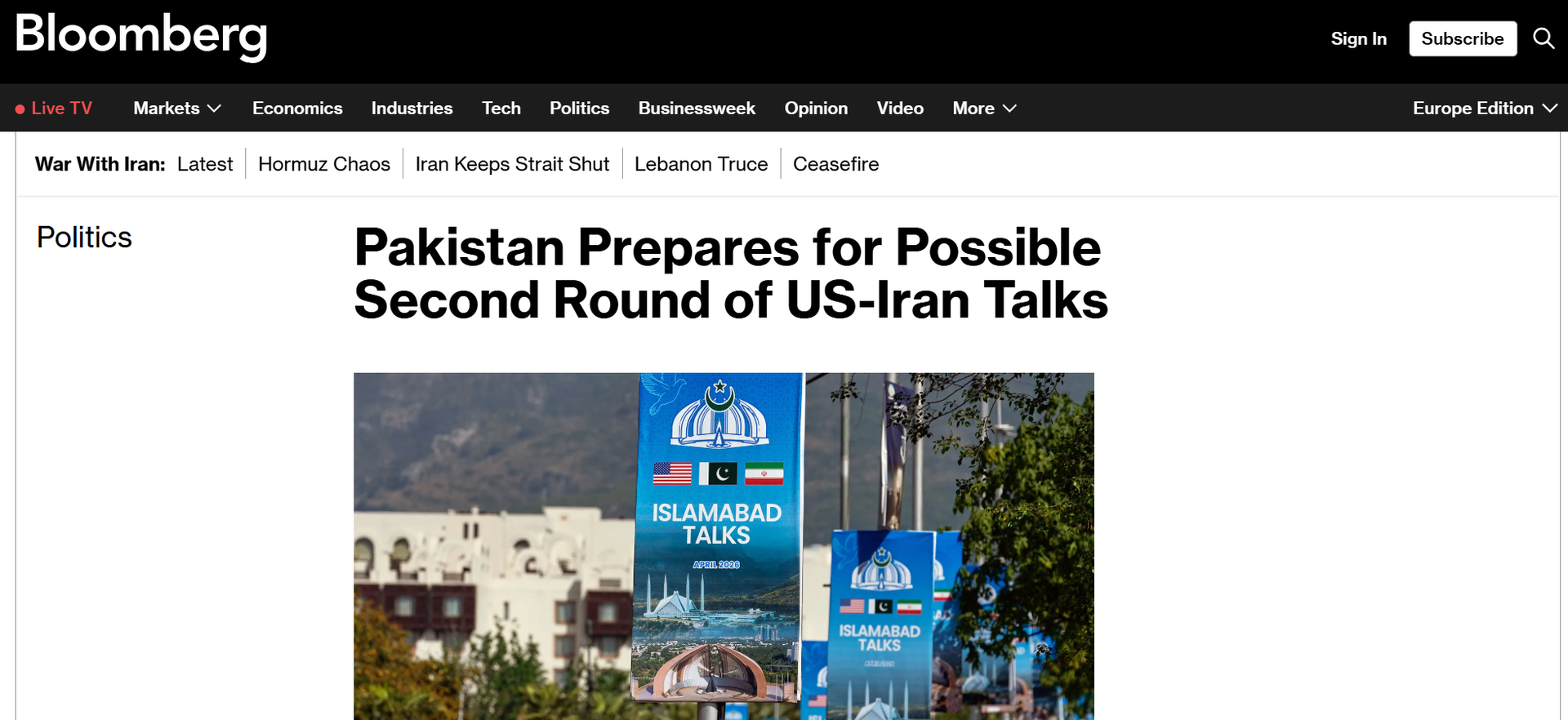- «Пакистан готовится к возможному второму раунду переговоров между США и Ираном»