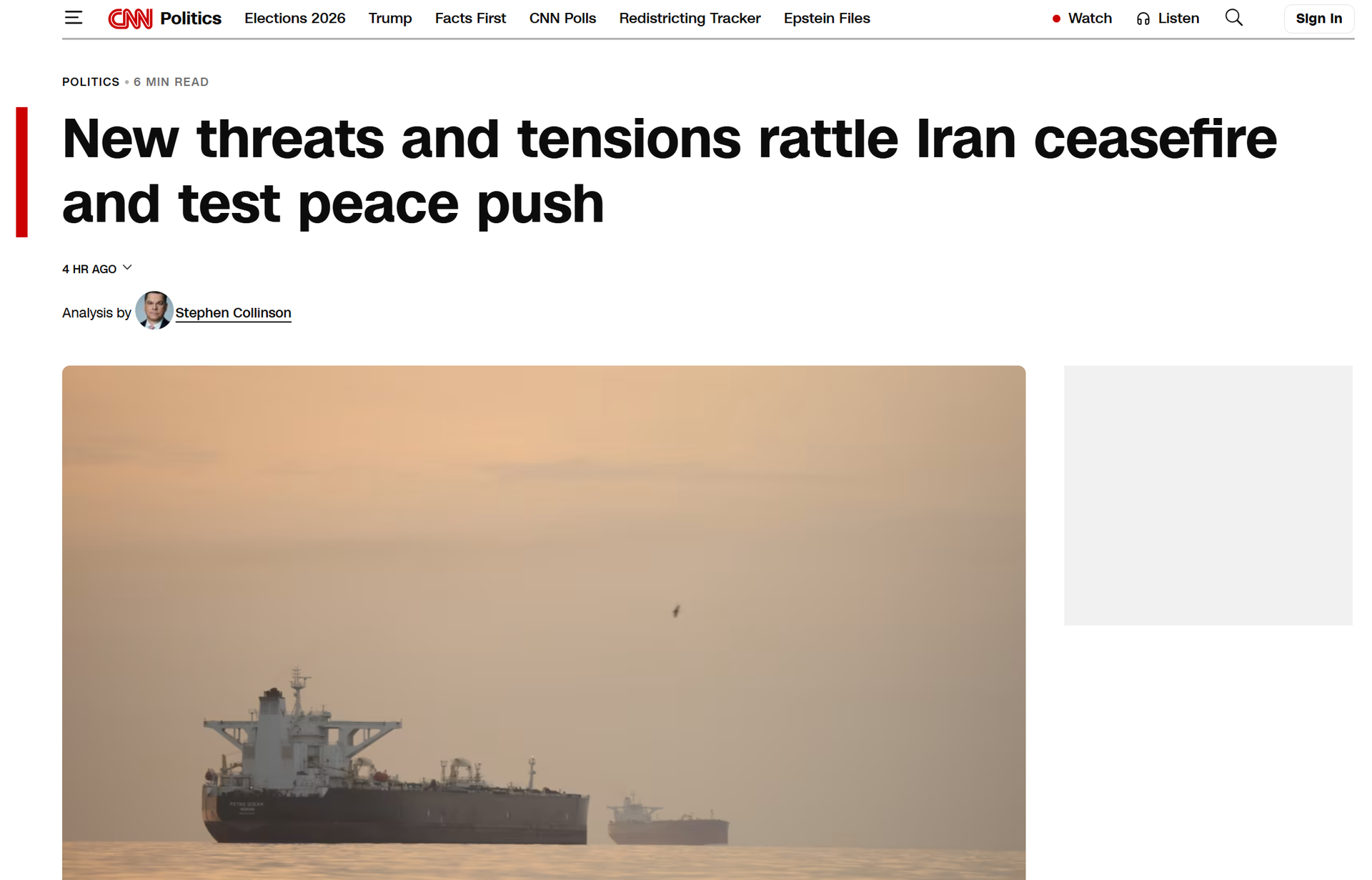 Тем не менее, несмотря на воинственную риторику, у обеих сторон есть «веские причины избегать возобновления боевых действий», полагает корреспондент. Так, Иран заинтересован в том, чтобы избежать дальнейших разрушений своей инфраструктуры, а неоднократные заявления Белого дома о том, что сделка близка, свидетельствуют об «ослаблении энтузиазма по поводу войны», нанёсшей большой экономический и политический вред США в год промежуточных выборов, поясняет CNN.