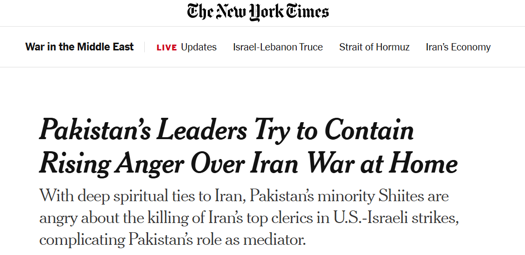 - «Руководство Пакистана пытается сдержать растущее в стране возмущение по поводу иранской войны»
