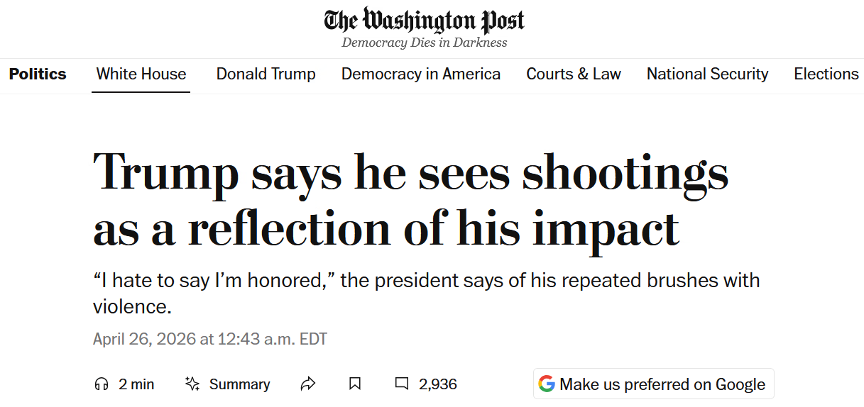 - «Десять лет я освещал события вокруг Трампа. На ужине Ассоциации корреспондентов Белого дома тьма подступила ощутимо близко»